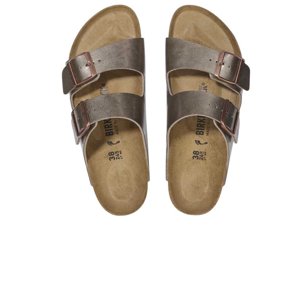 Il sandalo Arizona, un vero classico di BIRKENSTOCK, si è affermato da tempo come accessorio di moda irrinunciabile. Questo modello molto amato si presenta ora in veste rinnovata, sfoggiando un look decisamente scintillante di grande eleganza. La tomaia è in materiale sintetico Birko-Flor®, dermoaffine e resistente, con rivestimento effetto seta lucida.