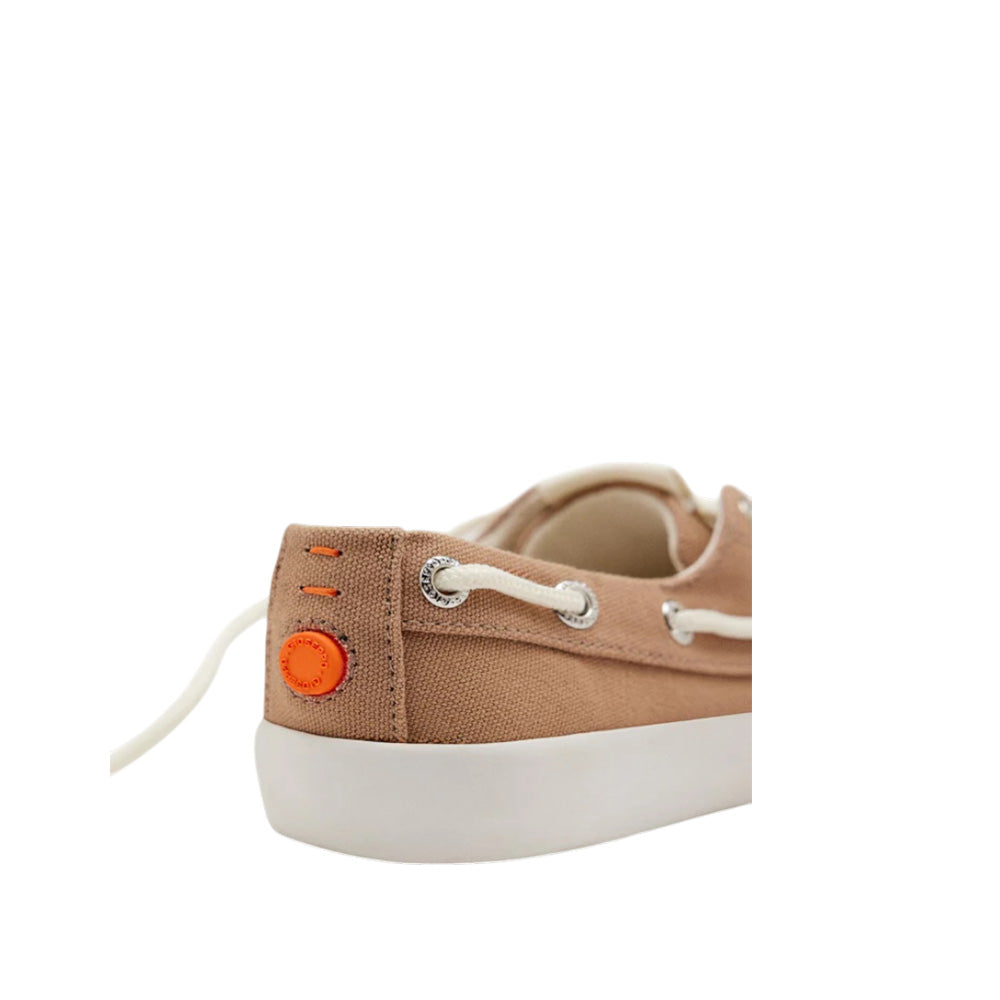 La tomaia è realizzata in tela e la suola è in gomma bianca con la parte inferiore color caramello. Dotato di soletta Gio Memory Effect, un sistema a effetto memoria che ammorbidisce e ammortizza l'impatto per garantire un maggiore comfort. La fodera e la soletta sono realizzate in poliestere traspirante riciclato.