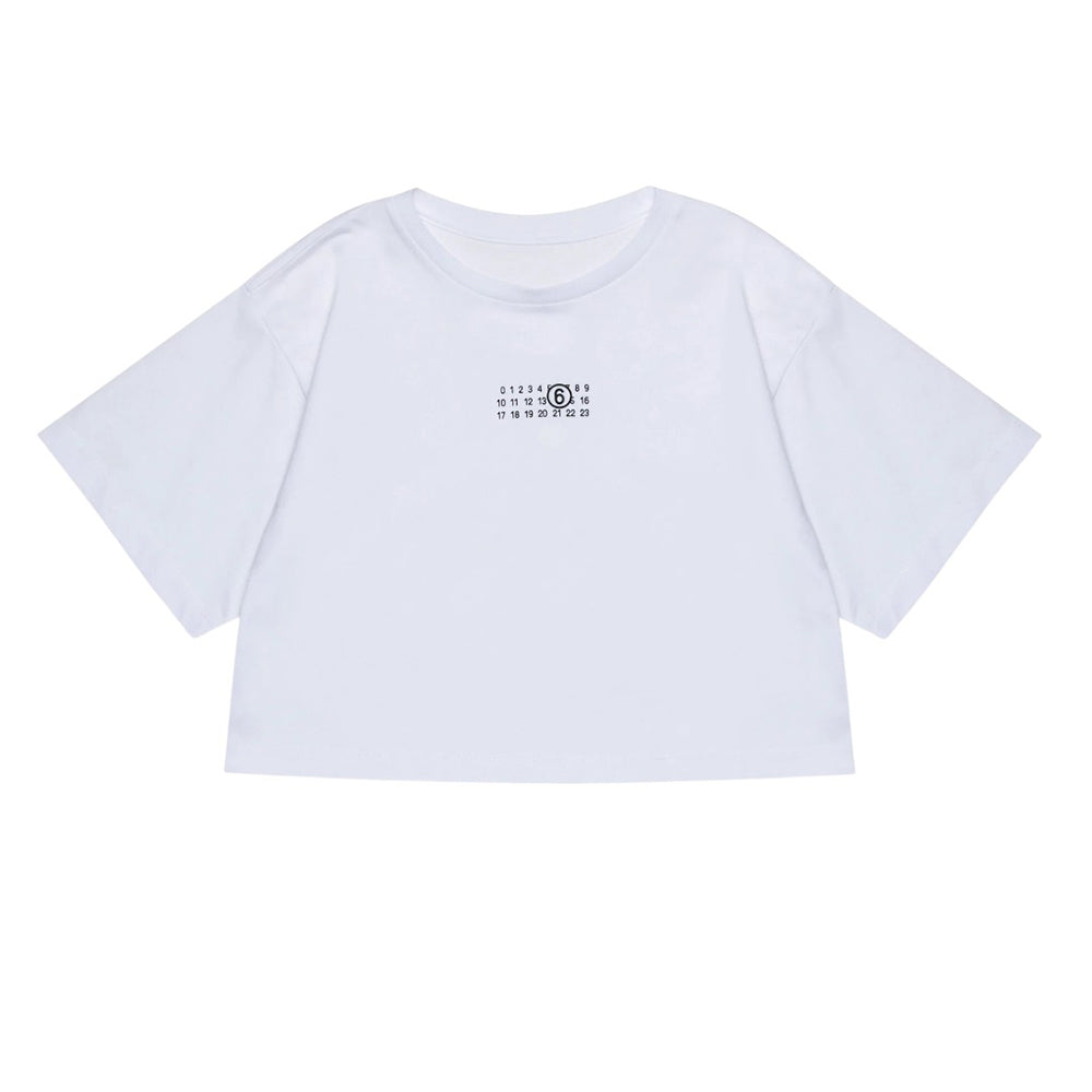 MM6 Maison Margiela T-shirt cropped bianca con Numeric logo M60908-MM04I