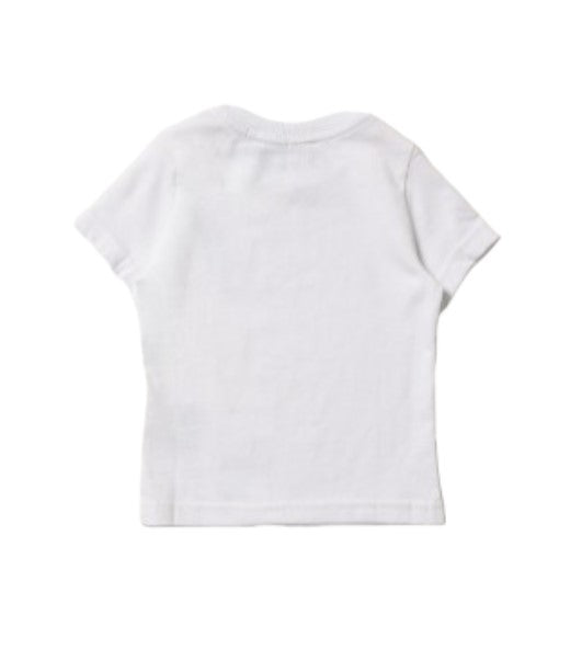 T-shirt girocollo manica corta con logo stampato sul davanti. Clips di chiusura sulla spalla.