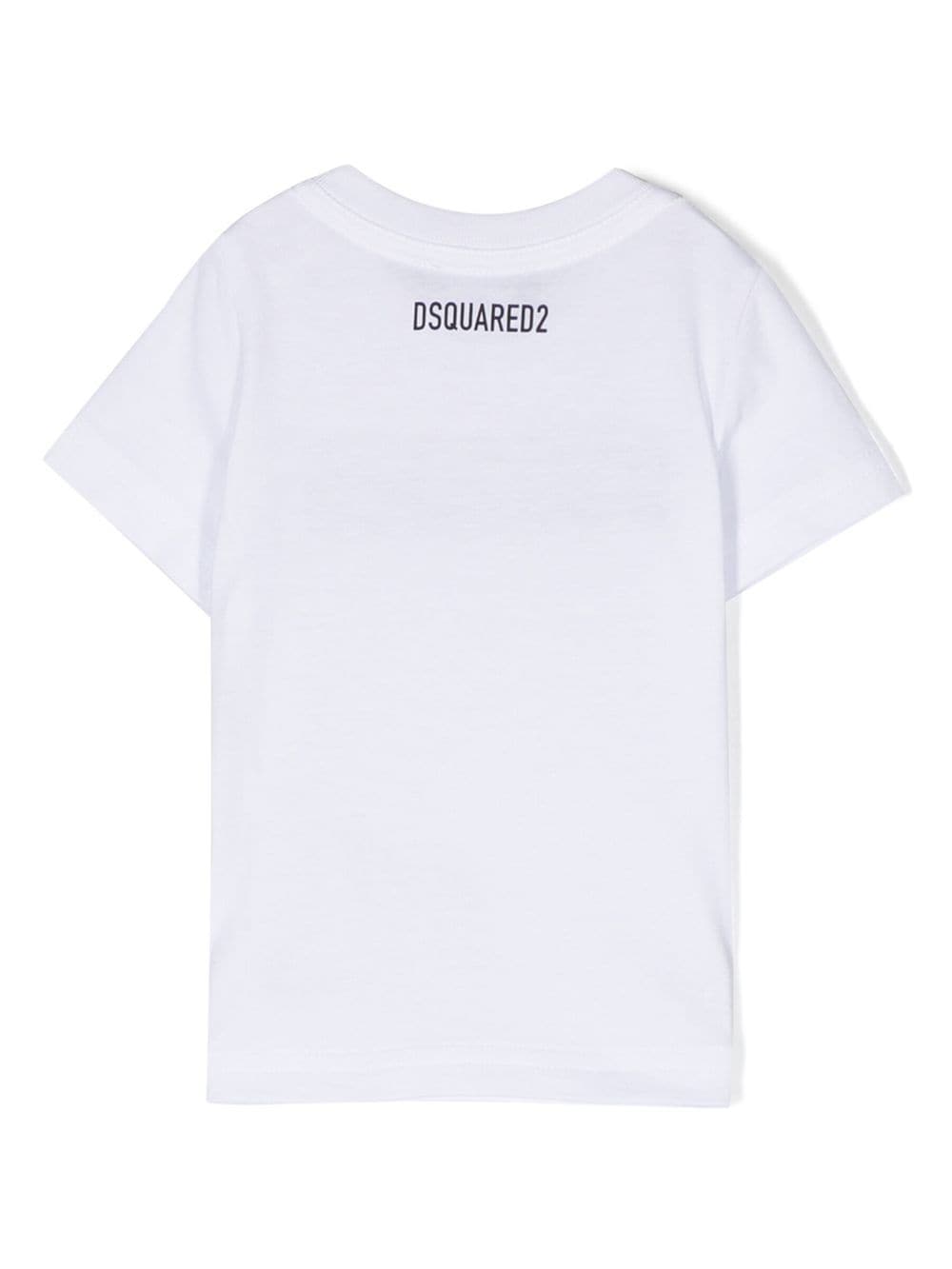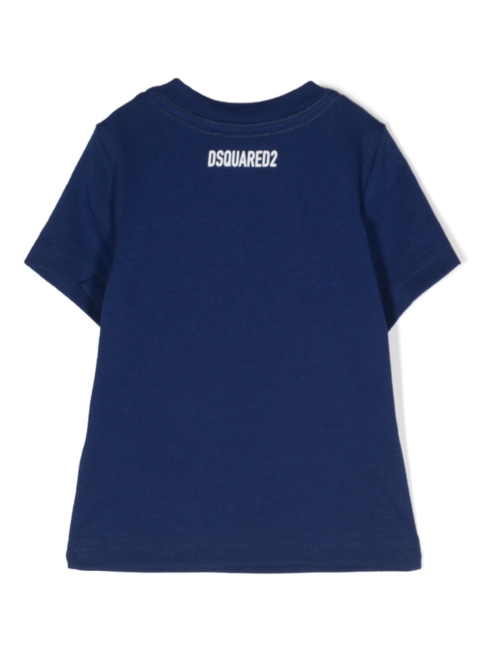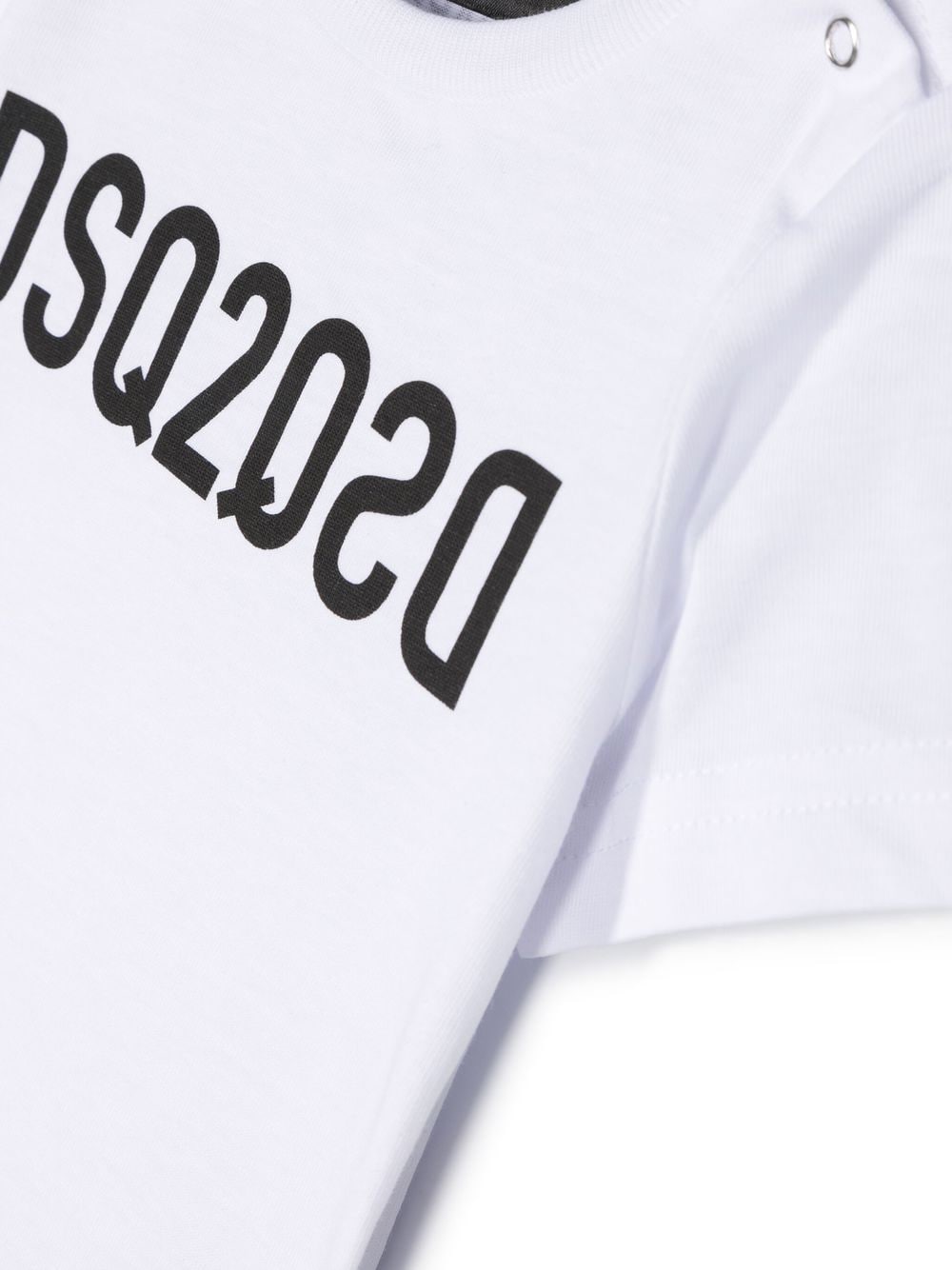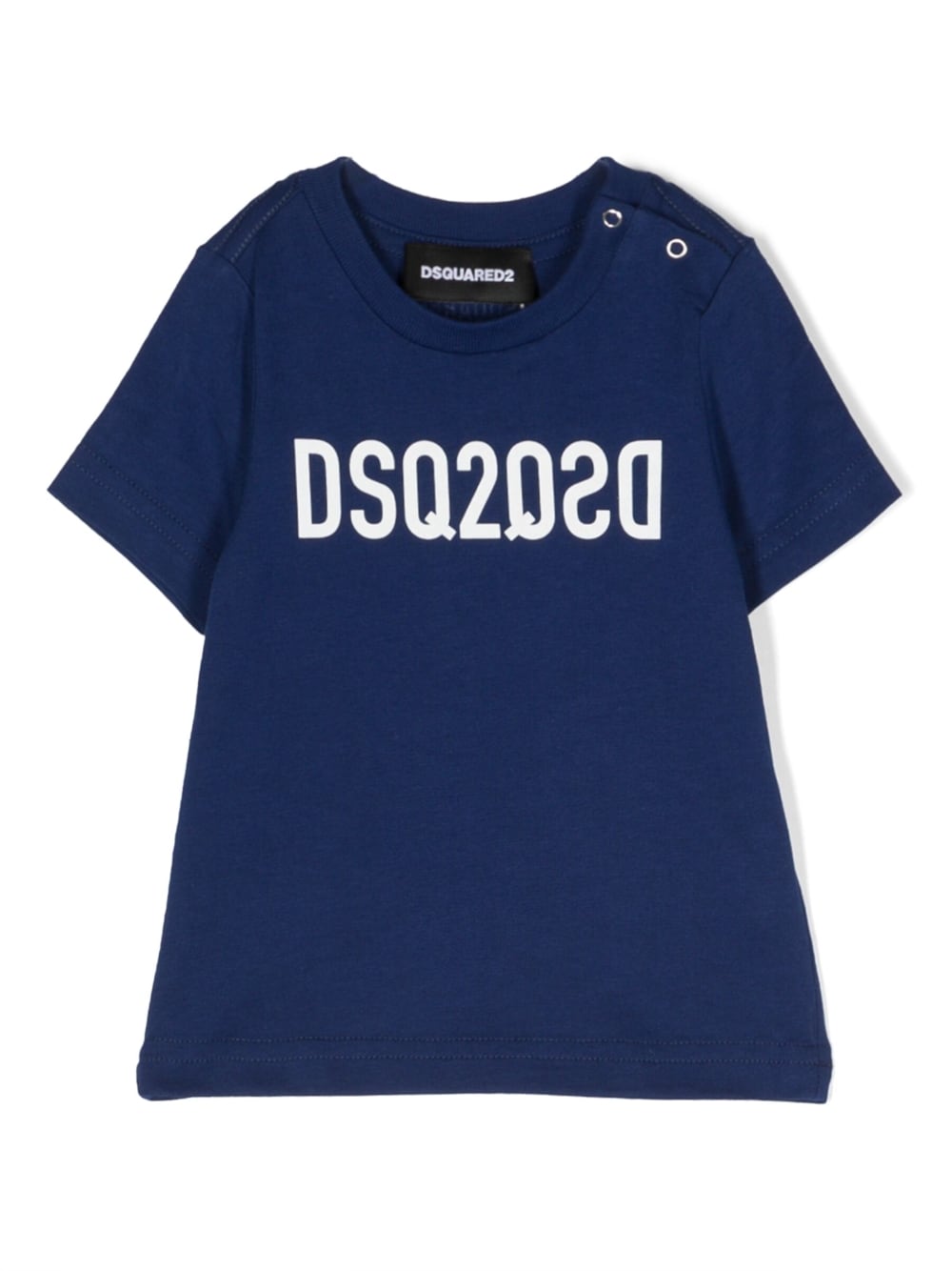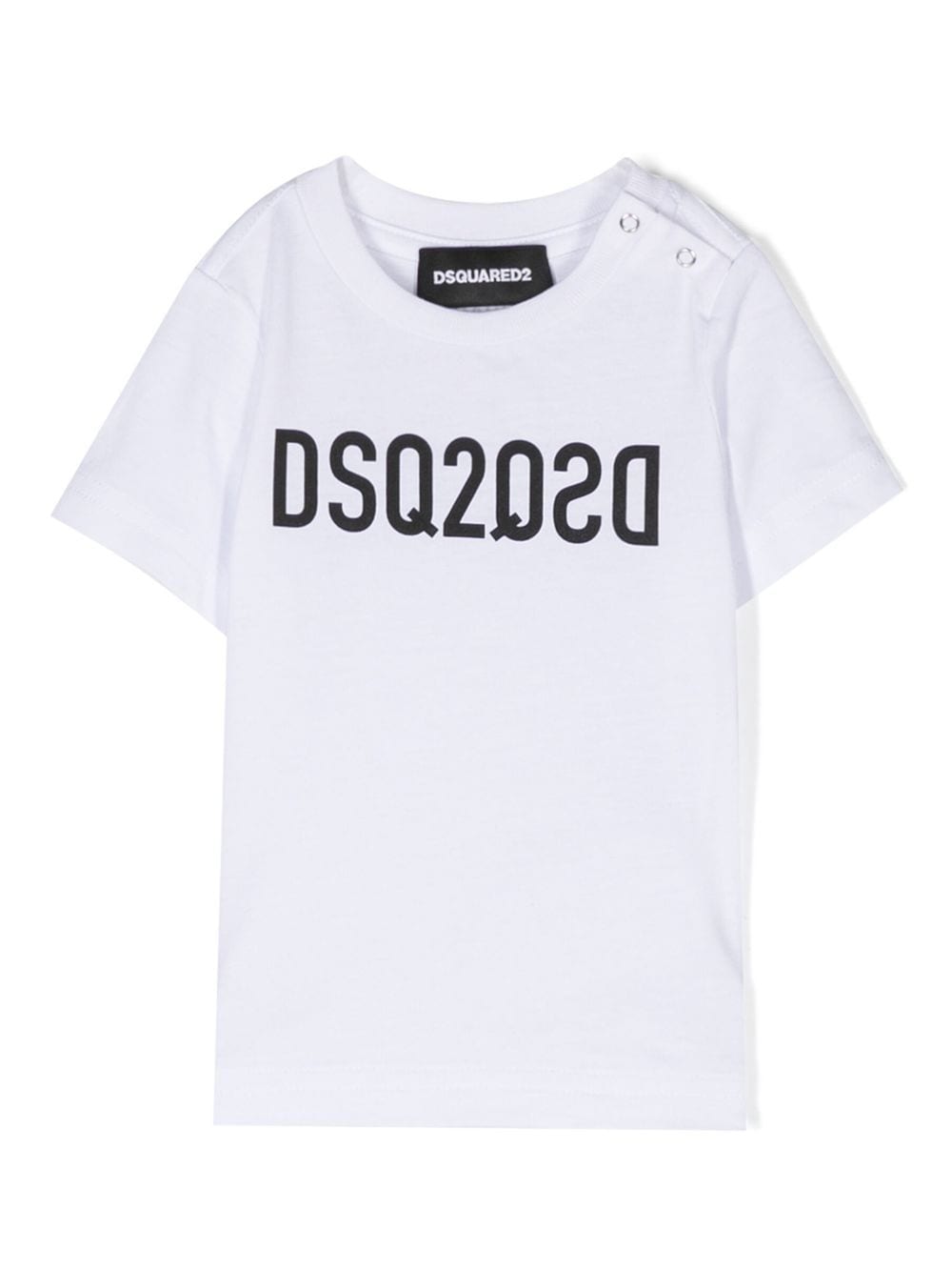 T-shirt girocollo a manica corta, clips di chiusura sulla spalla. Logo stampato sul davanti.