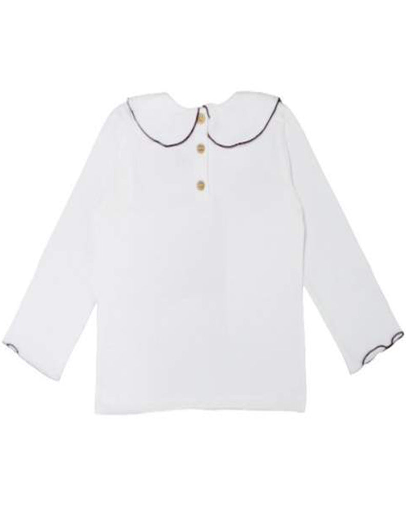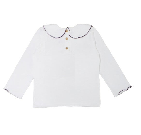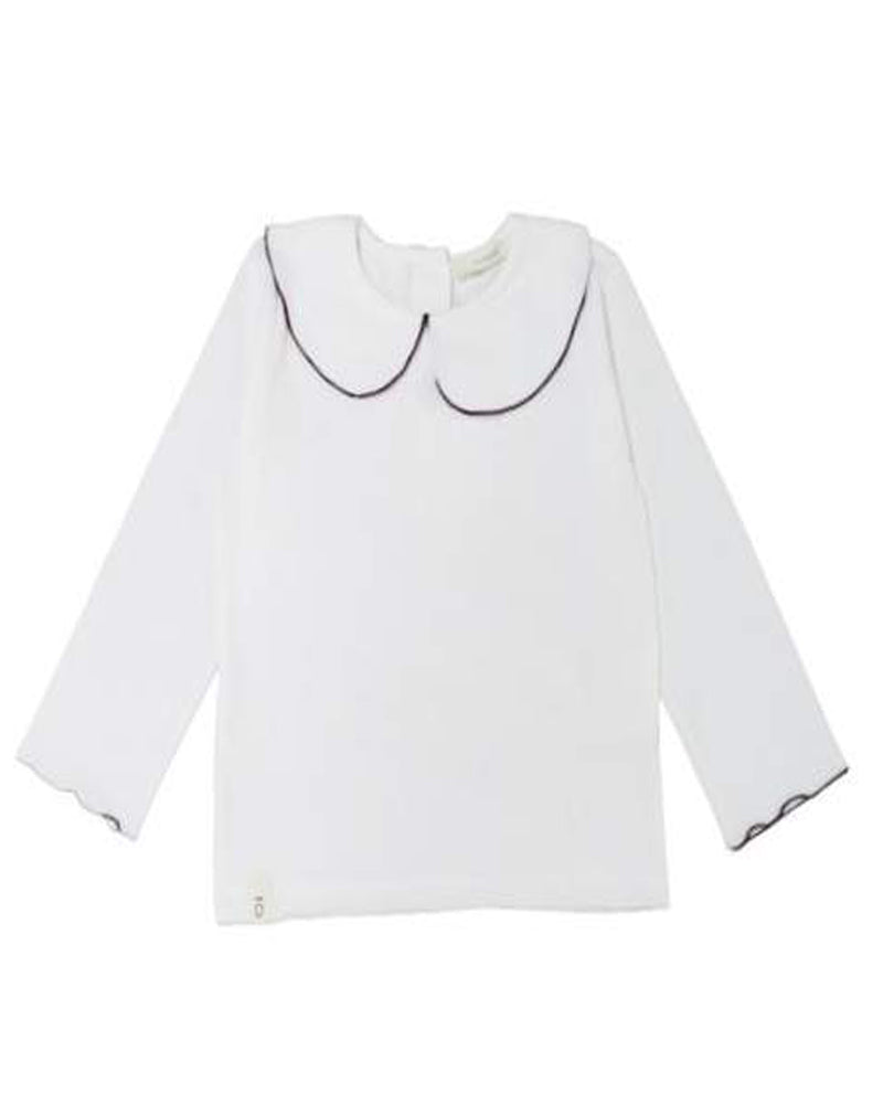 T-shirt manica lunga, colletto tondo con olro a contrasto, chiusua sul retro.