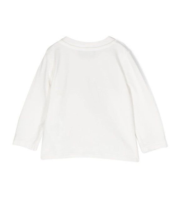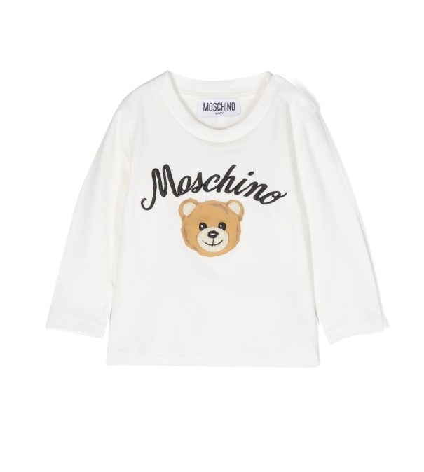 T-shirt girocollo a maniche lunghe in caldo cotone. Presenta stampa Teddy Bear e logo ricamato sul davanti, chiusura con bottoncini a pressione sulla spallina e collo a costine.