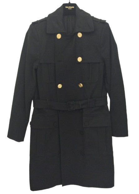 Trench doppiopetto, con cintura in vita, bottoni logati.
