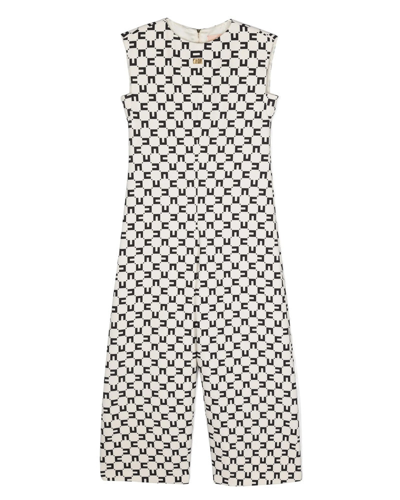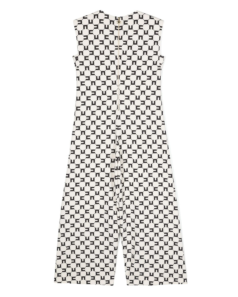Tuta intera con stampa, trama effetto crêpe, placca con logo color oro