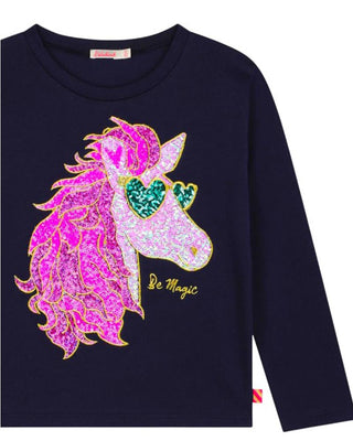 Billieblush T-shirt blu a maniche lunghe con unicorno U20475