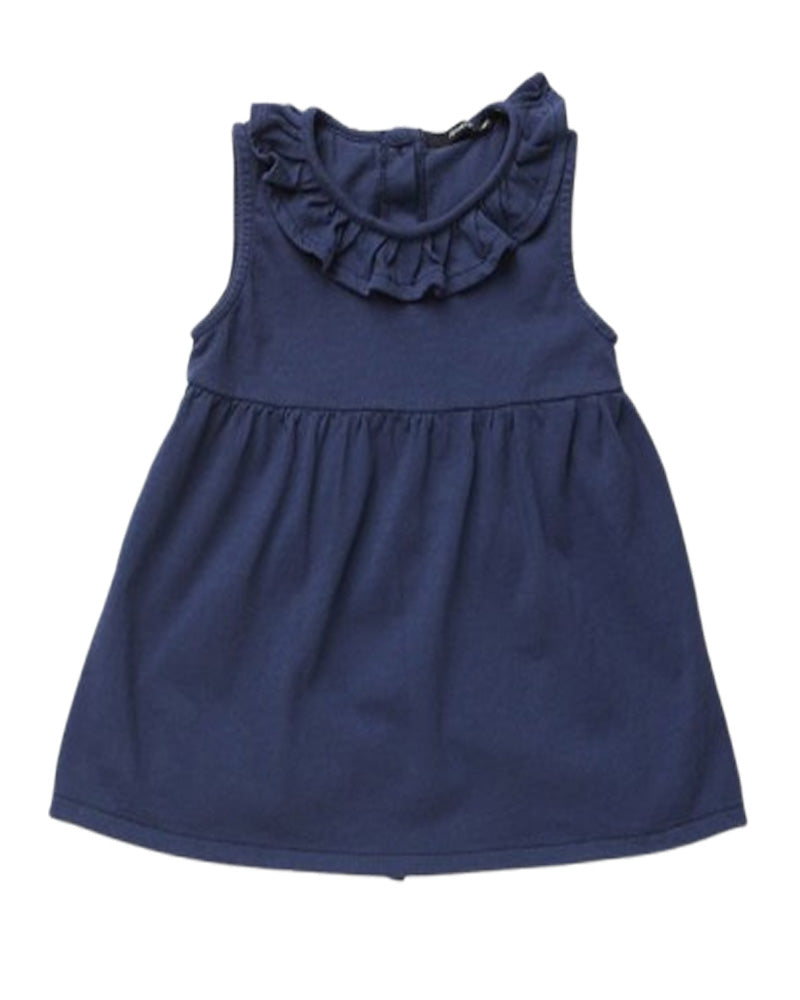 Vestina in jersey di cotone, girocollo, smanicato, ruches applicata allo scollo.