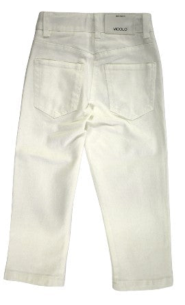 Hose mit fünf Taschen, Reißverschluss und Knopfverschluss.