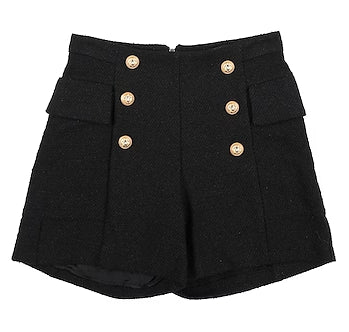 Mädchenshorts mit Zierknöpfen vorne und Reißverschluss hinten.