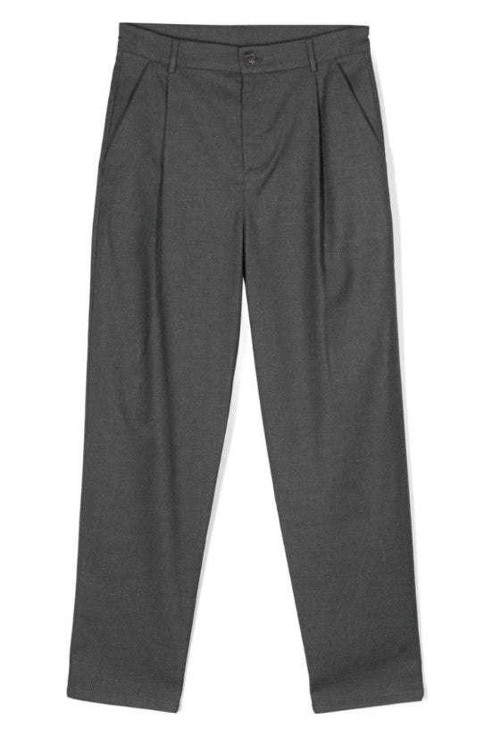 Baumwollhose mit Falten vorne, Knopf- und Reißverschluss vorne, seitliche America-Taschen.