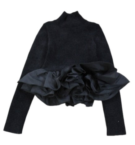 Chenille-Pullover mit Halbhalsausschnitt, langen Ärmeln und Taftrüschen.