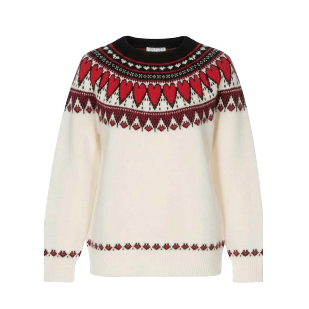 Rundhalspullover für Mädchen aus Wollmischung mit Intarsienmuster auf der Vorderseite, passendem gesticktem Logo am Ärmel und gerippten Abschlüssen.