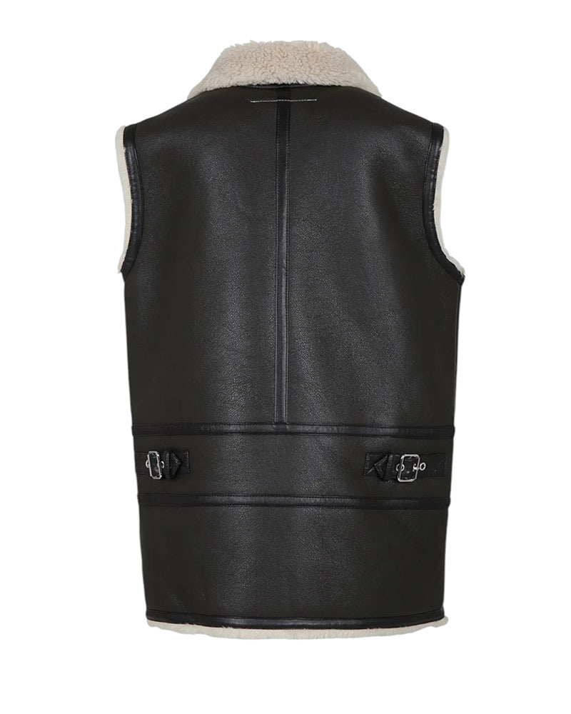 Gilet Ecomontone con rifiniture in pelliccia sintetica, collo alto, chiusura frontale con zip, due tasche sul petto con cerniera e orlo dritto. È decorato con toppa logata applicata sul davanti.