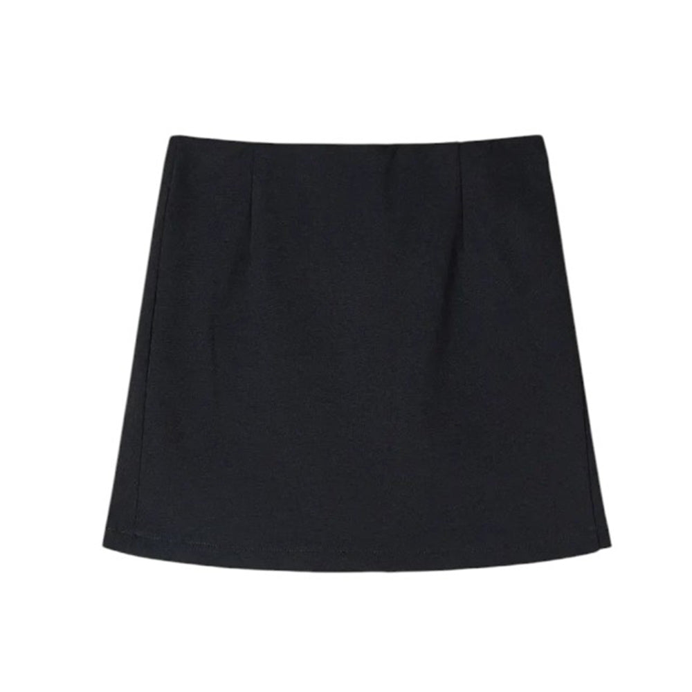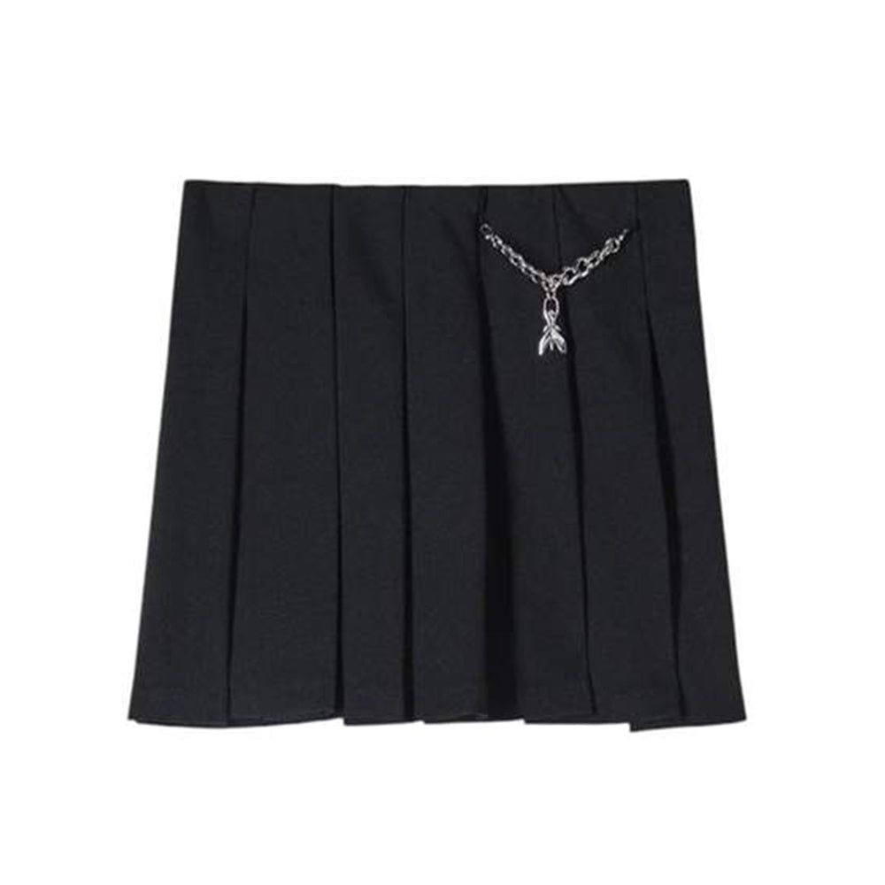 Gonna in punto Milano a pieghe, con vita elasticizzata, taglio dritto e catena in metallo con placca logo sul davanti.