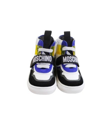 Moschino-Sneaker mit Logo auf der Träne und auf der Rückseite.