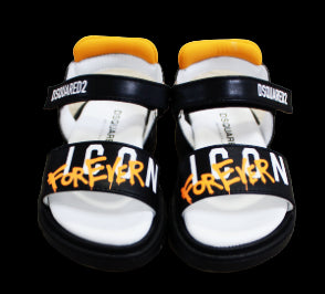Dsquared2-Sandalen mit ICON-Logo auf dem Vorderband und orangefarbenen Details.