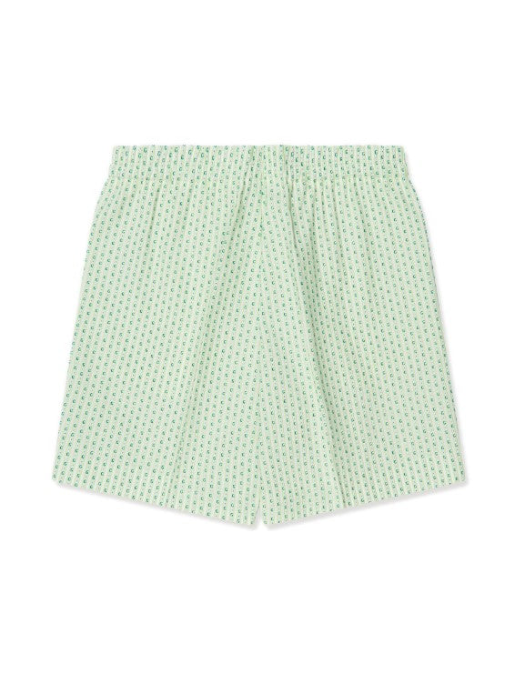 Kinder-Bermudashorts aus Baumwolle mit Allover-Muster, Knopf- und Reißverschluss vorne, elastischem Bund hinten, Leistentaschen vorne.