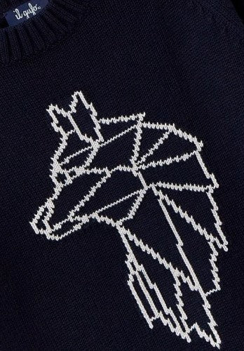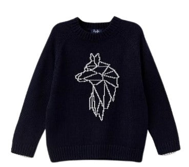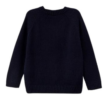Pullover mit Rundhalsausschnitt und kontrastierender Stickerei auf der Vorderseite.