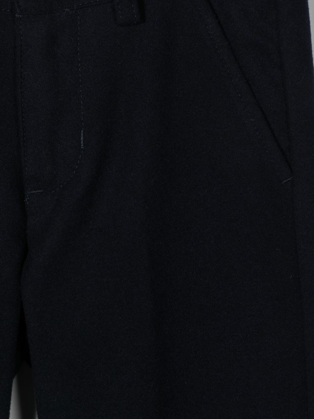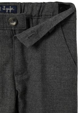 Klassische Hose mit aufgesetzter Tasche hinten und Knopf- und Reißverschluss vorne.