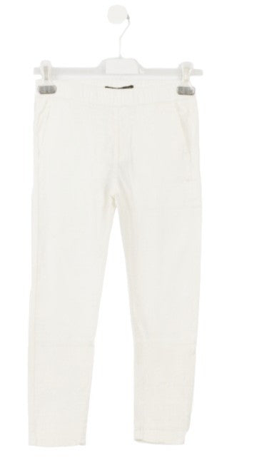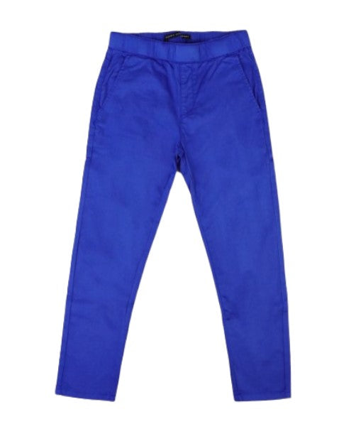 Kinderhose mit elastischem Bund aus Baumwolle, seitliche America-Taschen, kontrastierende Logo-Stickerei auf der Rückseite, zwei Leistentaschen auf der Rückseite.