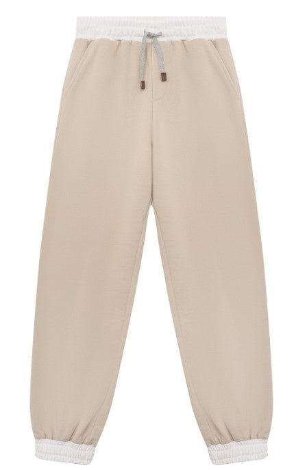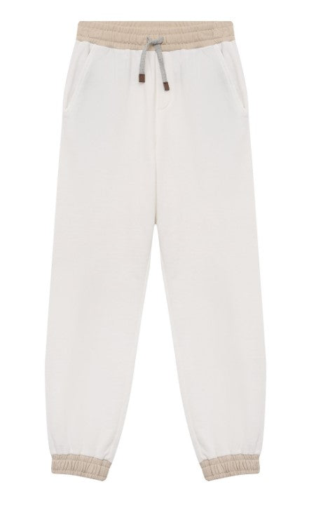 Hose aus Baumwollfleece, Jogger-Modell, kontrastierender Gummizug an Taille und Knöchel, America-Tasche.