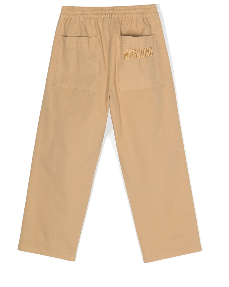 Pantaloni con gamba affusolata e dettagli a pieghe sul davanti. Dotati di vita elasticizzata con chiusura nascosta con patta e bottone, due tasche laterali inserite, due tasche posteriori applicate e etichetta con logo. Completati da un logo ricamato tonale sul retro.