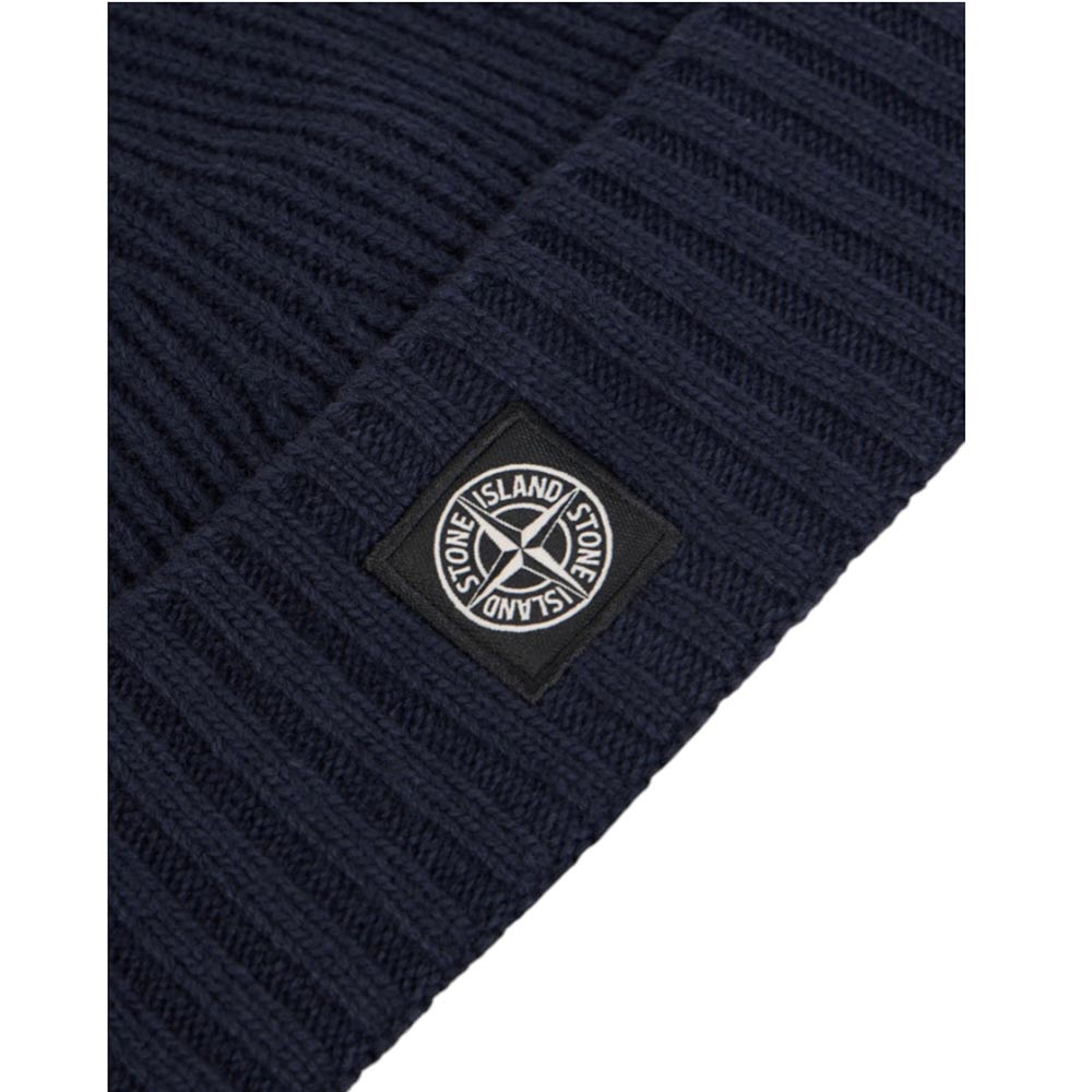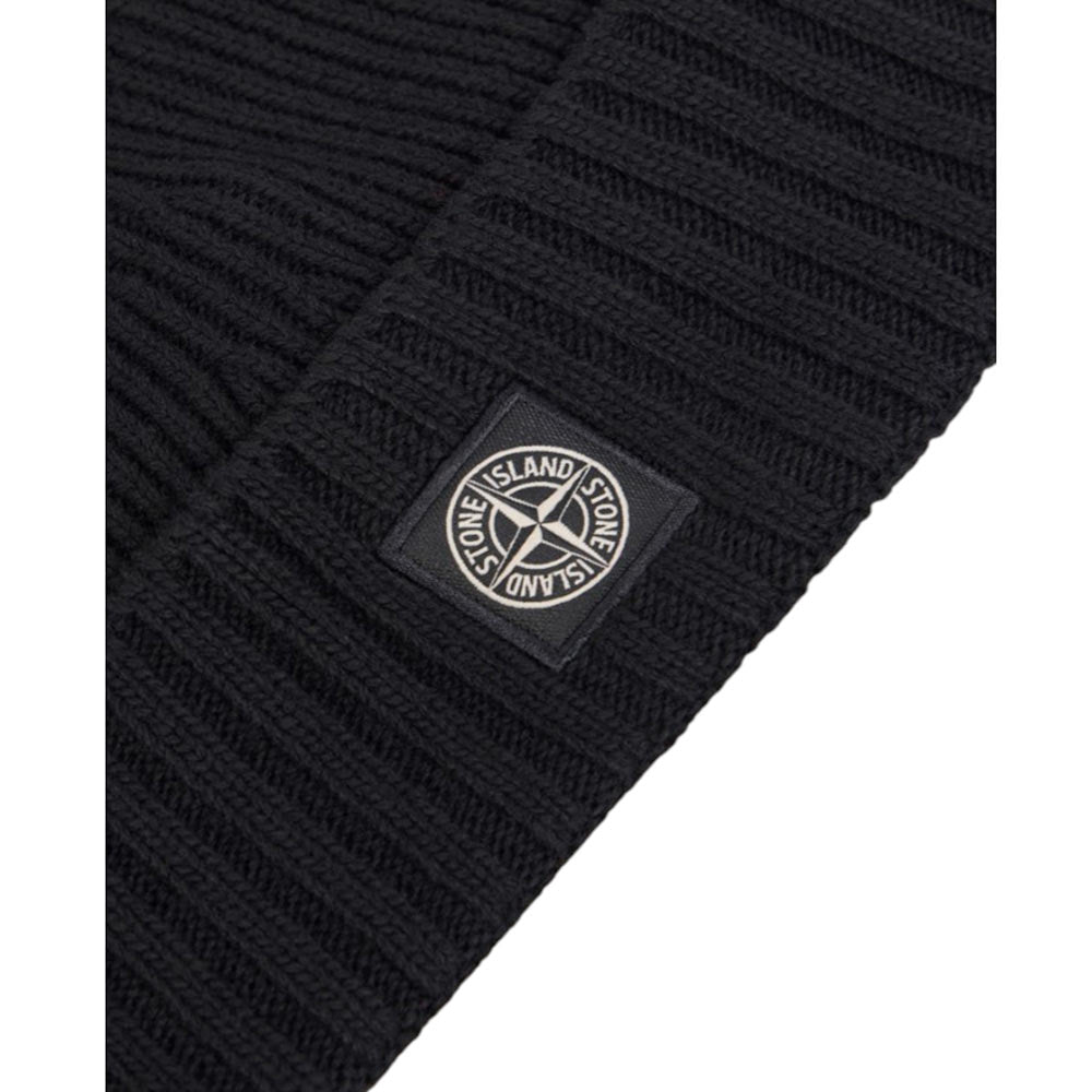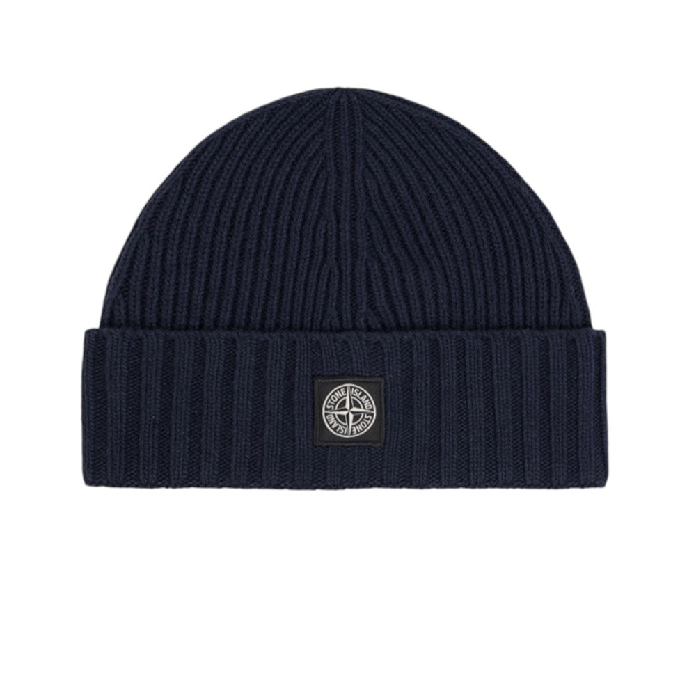 Cappello realizzato in misto lana, con design a coste, risvolto e patch logo Stone Island Compass applicato sul davanti.