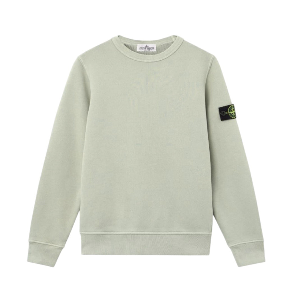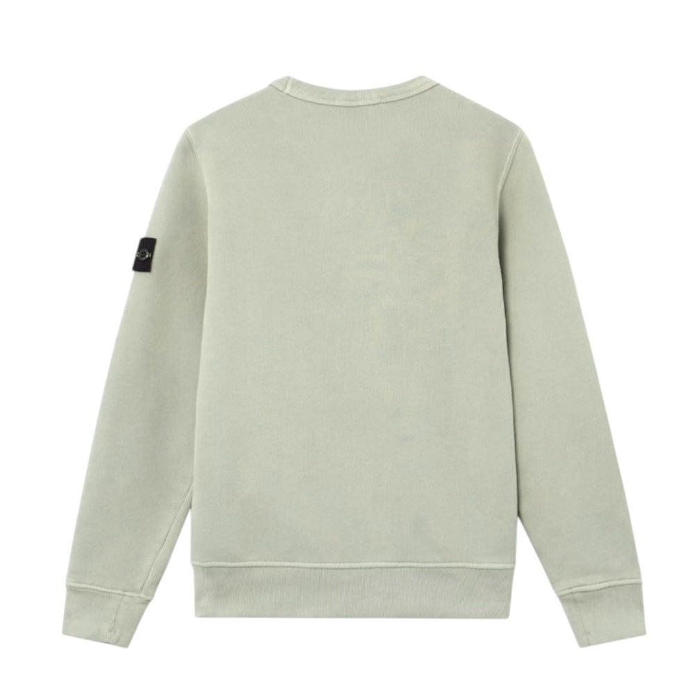 Felpa realizzata in cotone garzato, tinta in capo con il trattamento ‘OLD. Presenta scollo rotondo, maniche lunghe, fodera in pile e finiture a costine. È decorata con Badge Stone Island applicata sulla manica.
