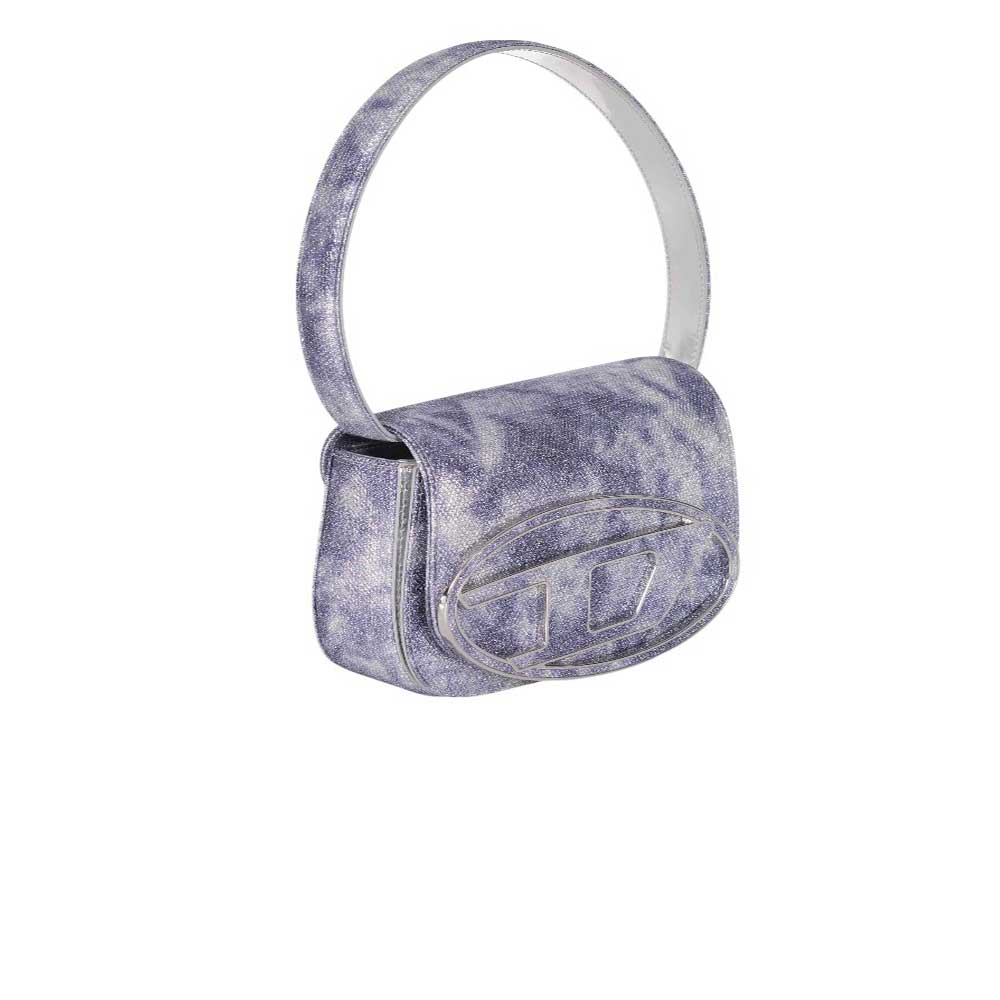 La borsa 1DR di Diesel unisce stile e funzionalità in un design strutturato e distintivo. Realizzata in tessuto glitter con stampa marmorizzata in tonalità preziose, presenta una patta con chiusura magnetica decorata dalla placca Oval D in metallo intarsiata. Dotata di maniglia ripiegabile e tracolla regolabile e rimovibile, offre versatilità d’uso a spalla o crossbody. L’interno è organizzato con una tasca a busta e uno scomparto piatto, ideale per mantenere ordine con eleganza. Composizione tecnica per un effetto brillante e duraturo.