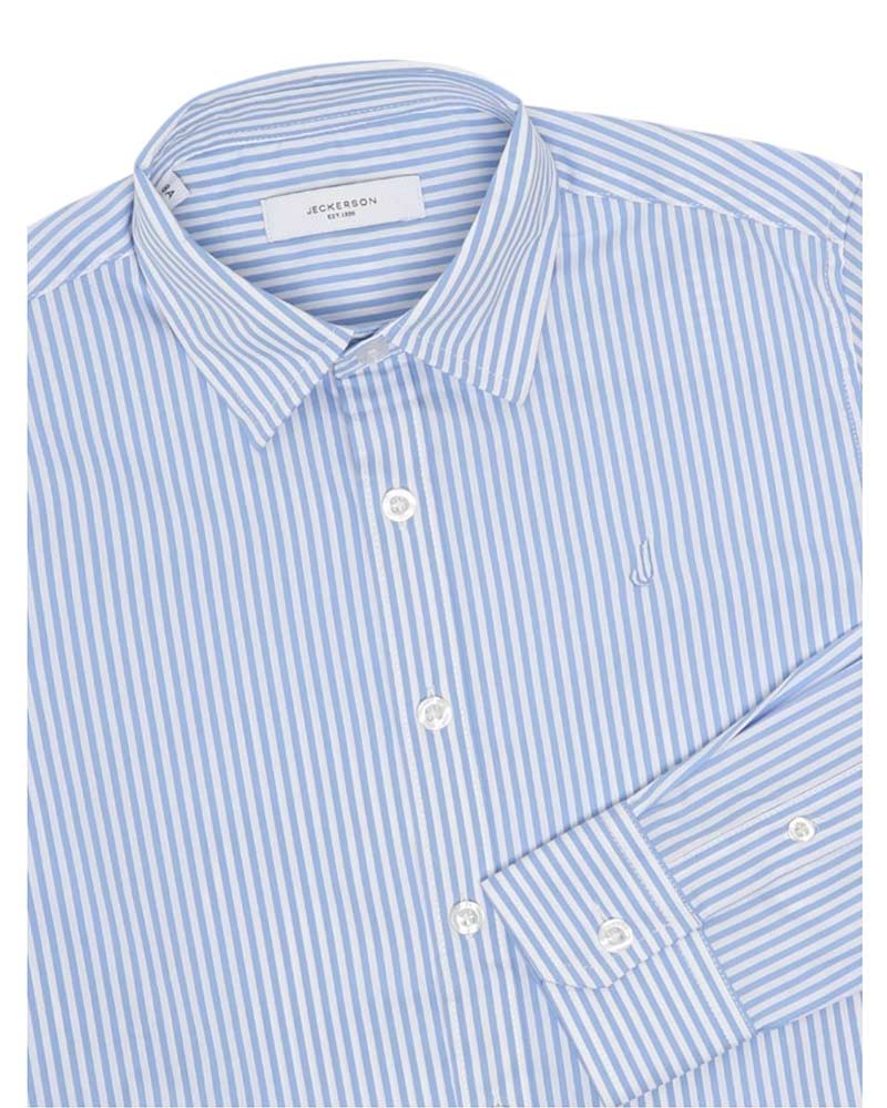Camicia da bambino realizzata in popeline di cotone. Presenta fantasia a righe, colletto a punta, chiusura frontale con bottoni, maniche lunghe e orlo curvo. È decorata con logo ricamato sul petto.