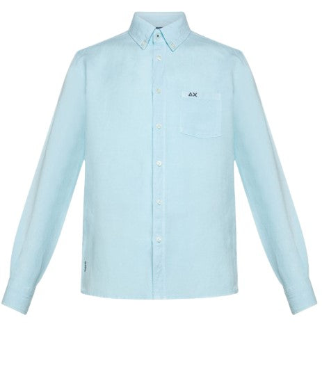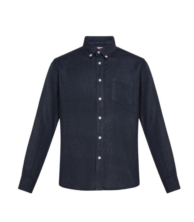 Geknöpftes Leinenhemd für Jungen, Verschluss vorne mit Knöpfen, aufgesetzte Tasche vorne mit gesticktem Logo.