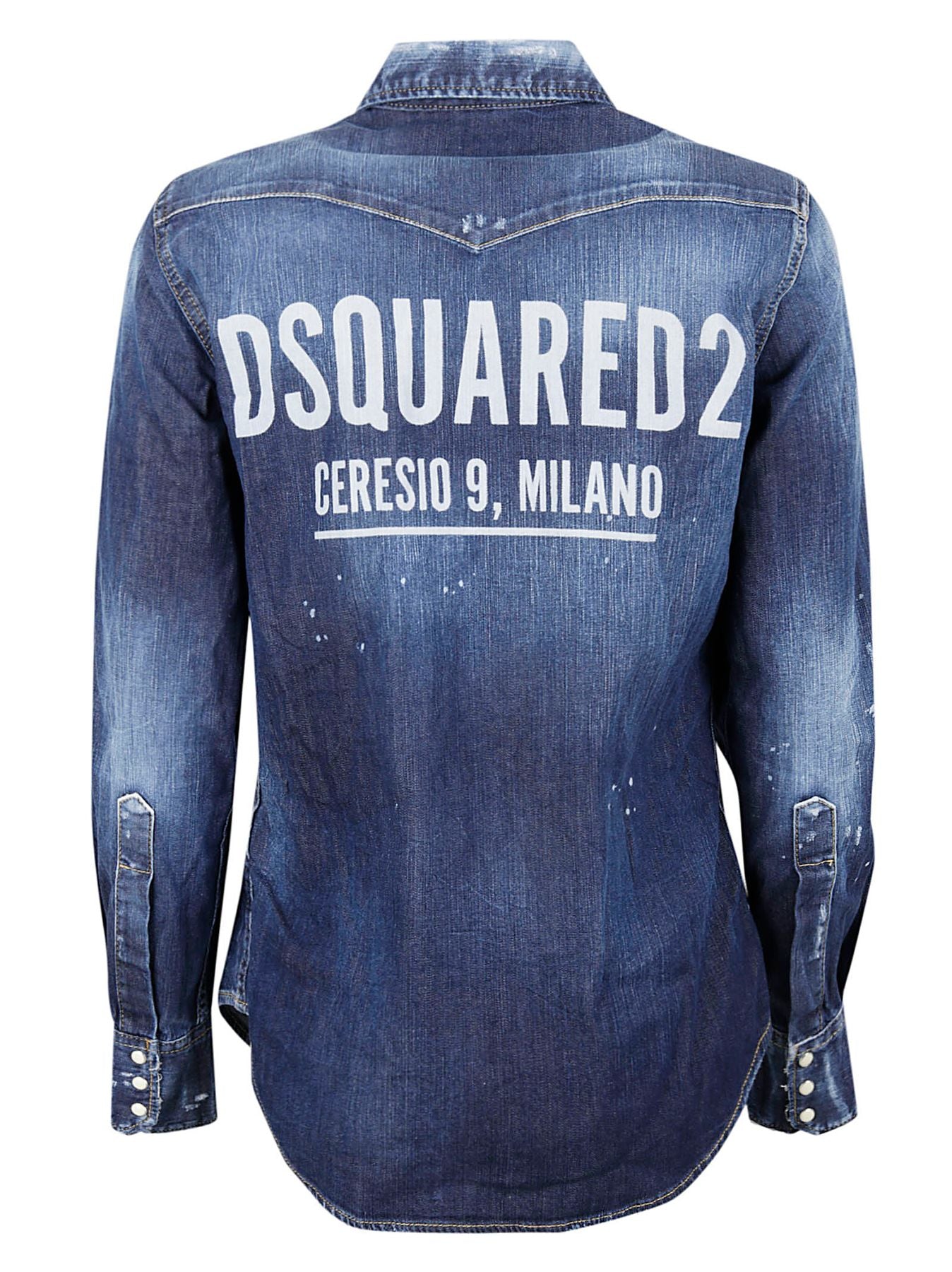 Jeanshemd, Clipverschluss, aufgesetzte Taschen, Aufdruck auf der Rückseite.