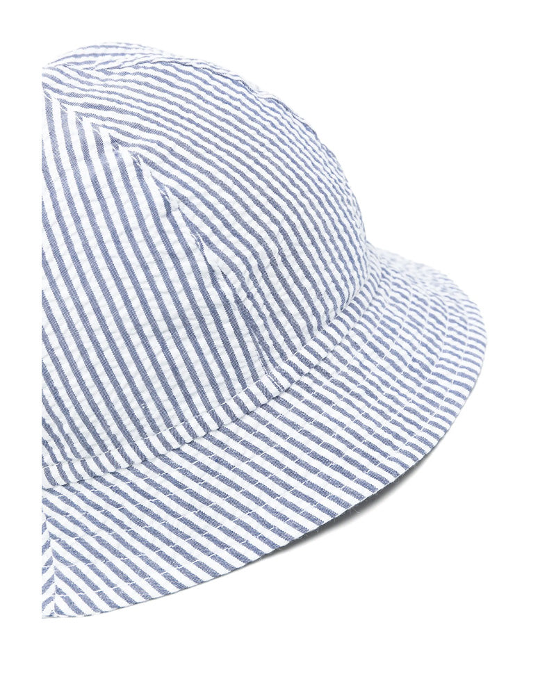 Cappello bucket con motivo a righe verticali, arricchito da ricamo con logo sul fronte.