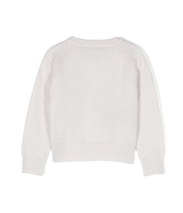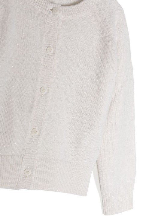 Strickjacke aus Wolle mit Lurex-Effekt, Verschluss vorne mit Knöpfen.