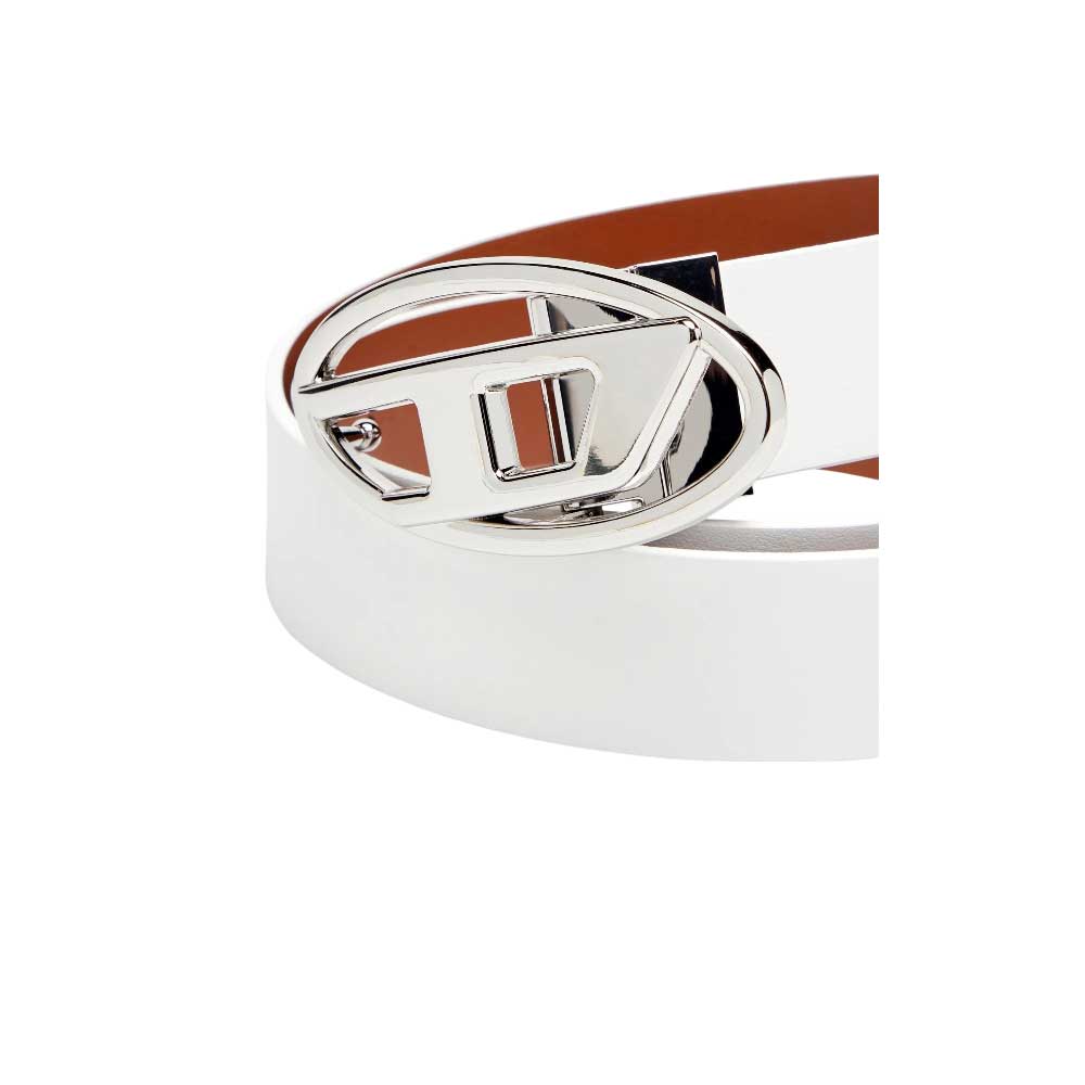 Questa cintura Diesel da uomo, larga 3 cm, è realizzata in pelle di alta qualità con due tonalità a contrasto, offrendo un design reversibile versatile. La fibbia in metallo lucido a forma di Oval D aggiunge un tocco distintivo e raffinato. Ideale per chi cerca un accessorio funzionale e di stile, permette di variare facilmente il look grazie alla sua doppia faccia. La chiusura con fibbia garantisce una vestibilità sicura e comoda.