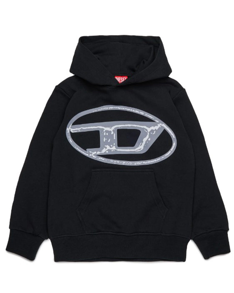 Diesel Felpa nera con cappuccio e maxi logo Oval D J02487-KYAQK