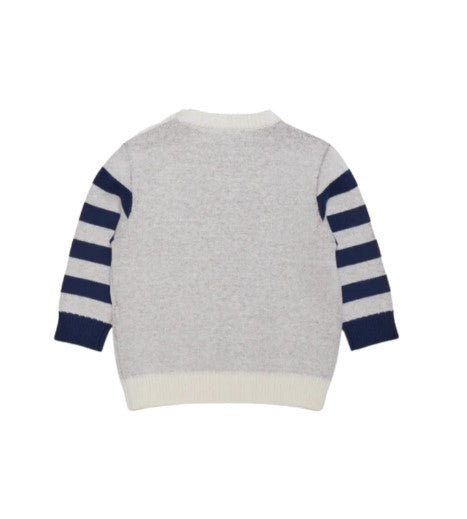 Langärmliger Pullover mit Rundhalsausschnitt aus Wollmischung. Gemusterter Einsatz und Logo auf der Vorderseite. Knopfverschlüsse an der Schulter, gerippter Kragen, Bündchen und Saum.