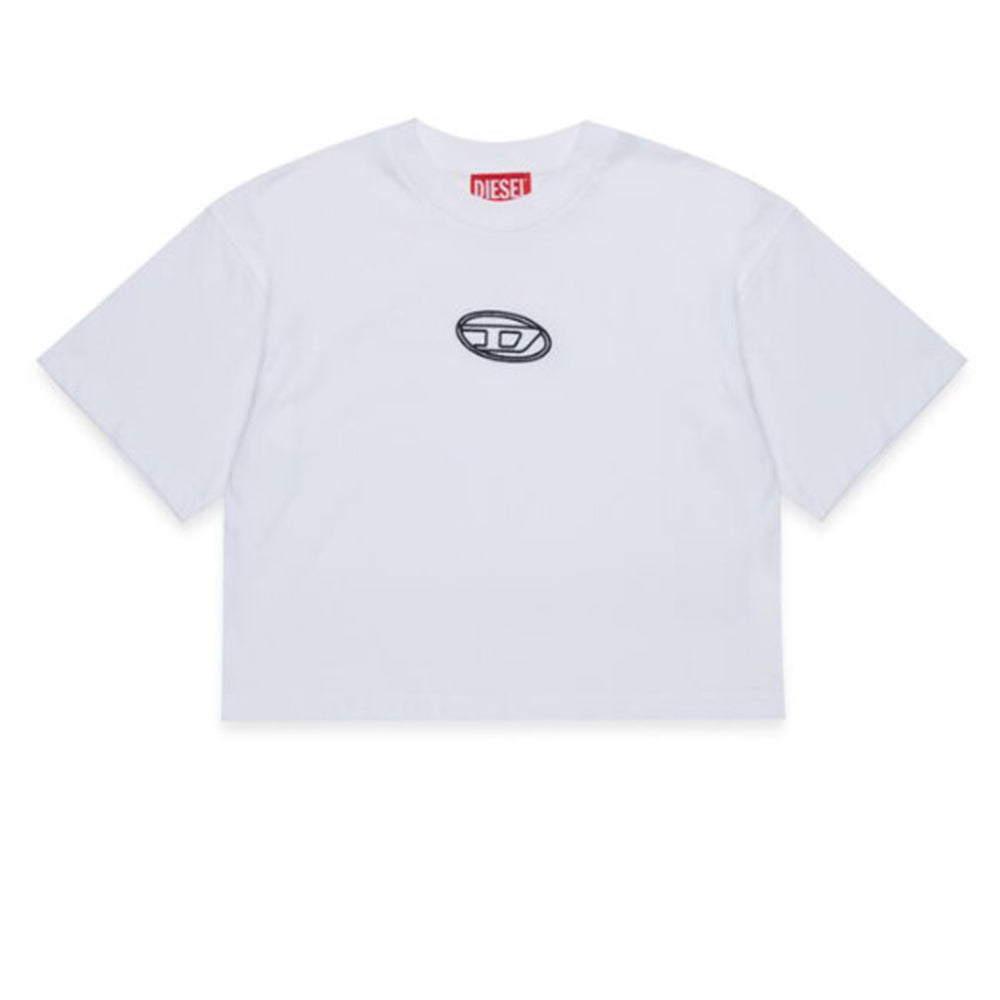 Diesel T-shirt bianca cropped con logo ricamato J02428-00YI9-K100