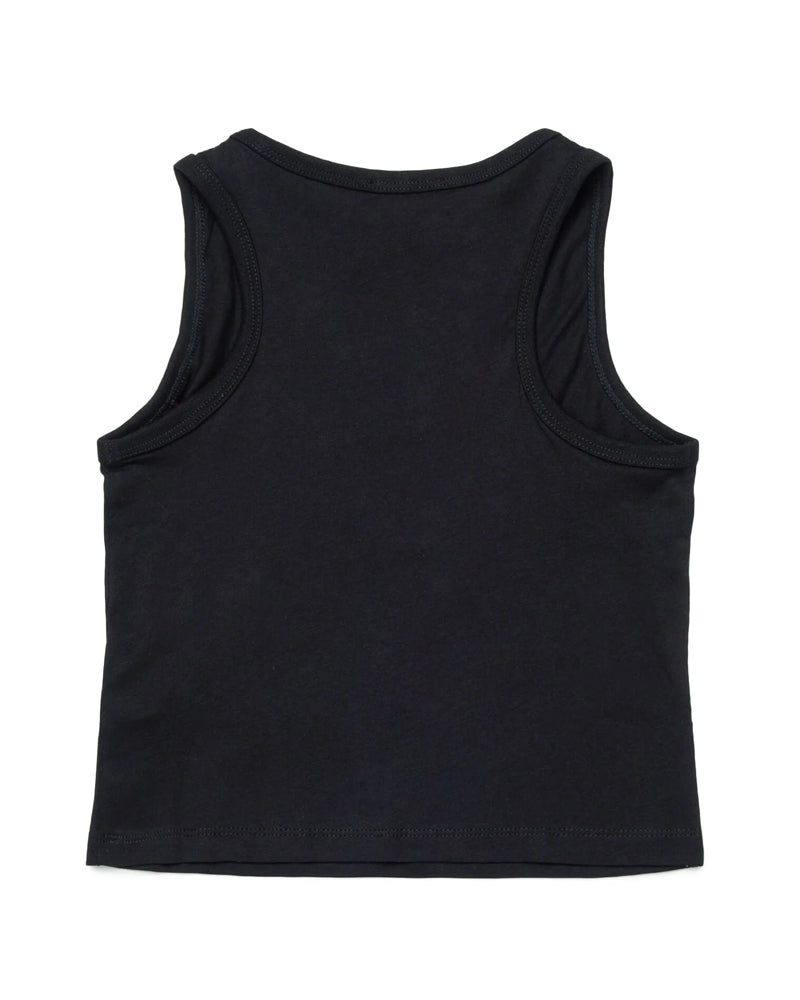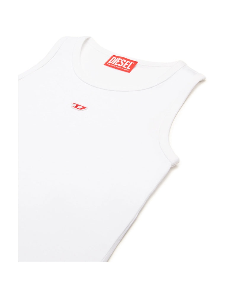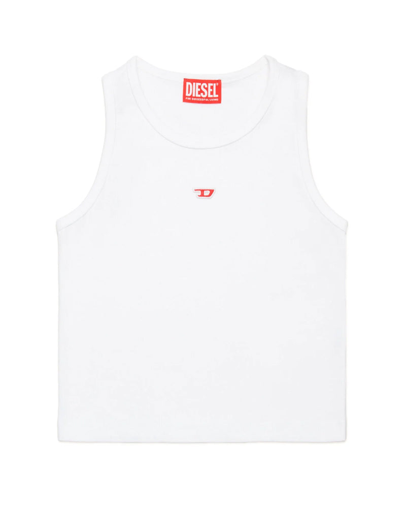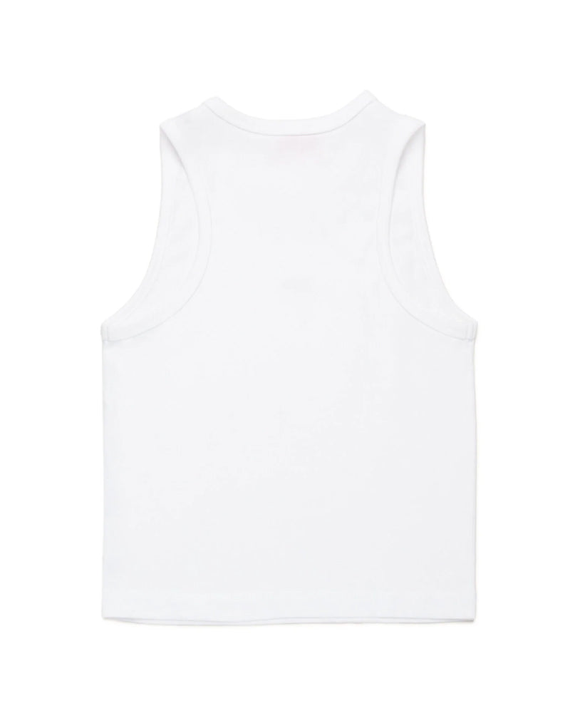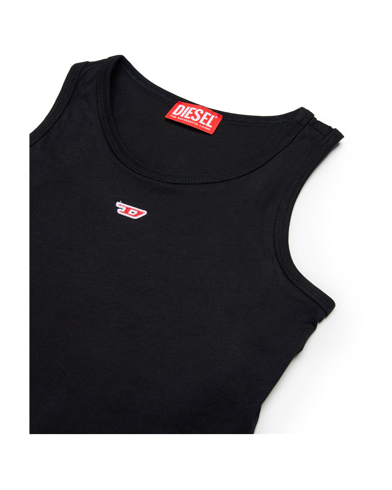 Top girocollo smanicato in jersey a costine. Presenta una patch "D" applicata sul davanti.