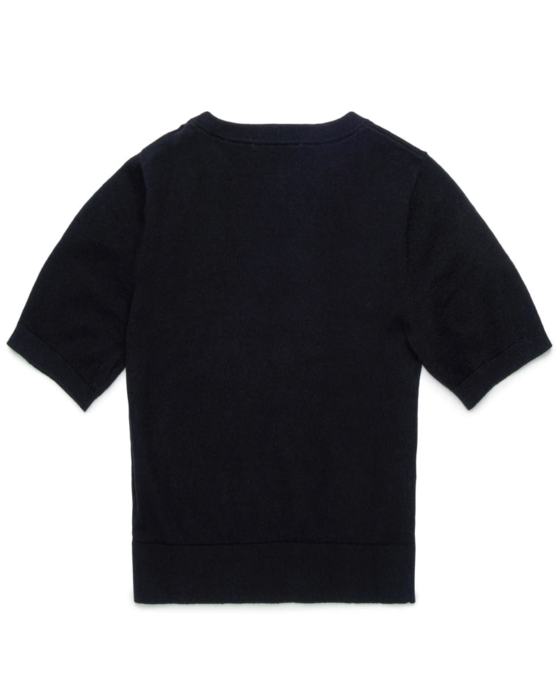 Top girocollo a maniche corte realizzato in maglia rasata a mano morbida. Presenta sul davanti l'iconico logo Oval D in versione cut-out e finiture a coste.