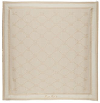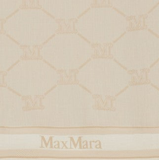 Schal von MAX MARA, verziert mit einer Jacquard-Verarbeitung, die das ikonische M-Monogramm-Logo in der Mitte zeichnet. Abgerundet mit Fransenkanten.