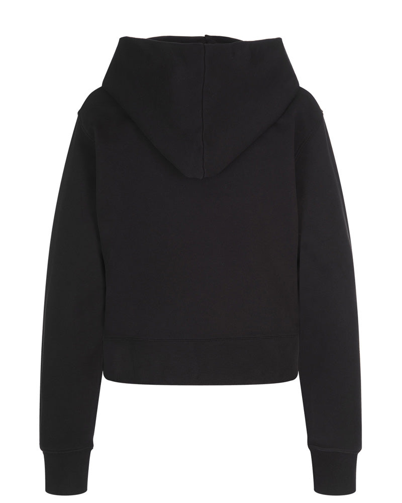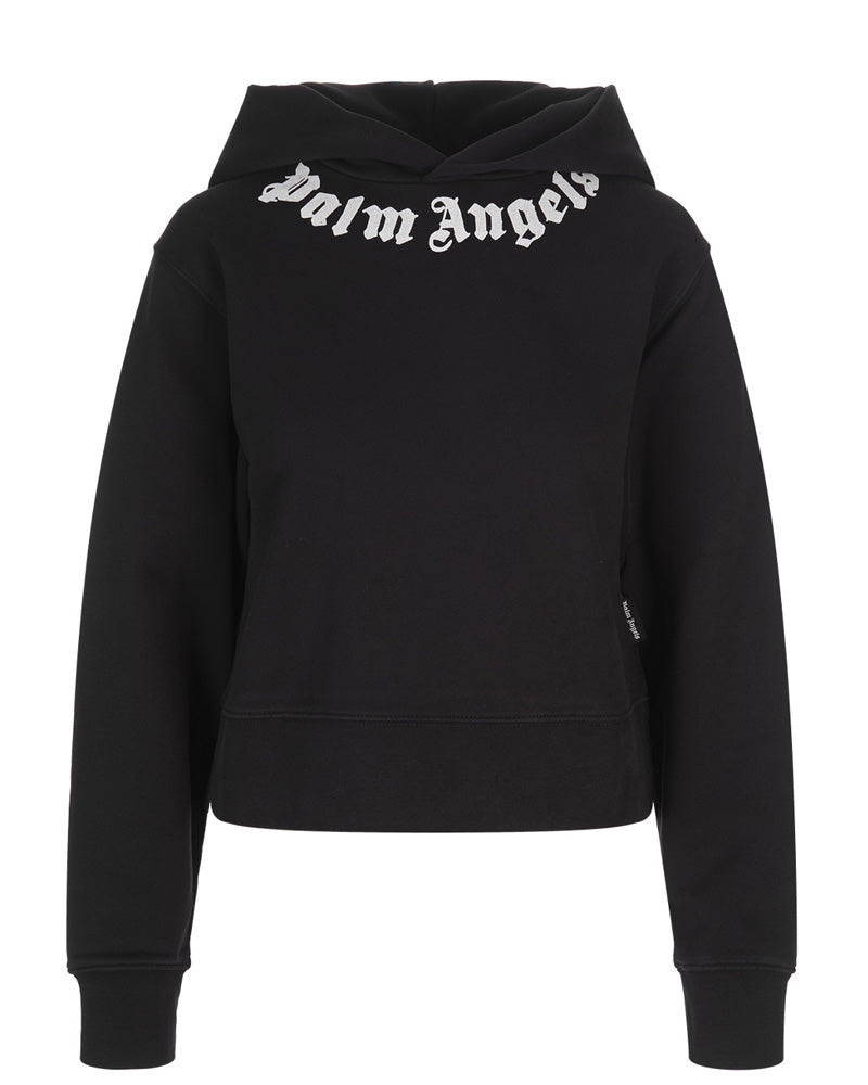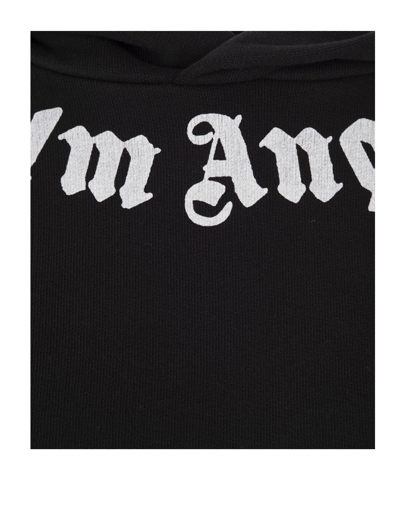 Kurzer Kapuzenpullover mit langen Ärmeln und handgedrucktem „Palm Angels“-Logo um den Hals.