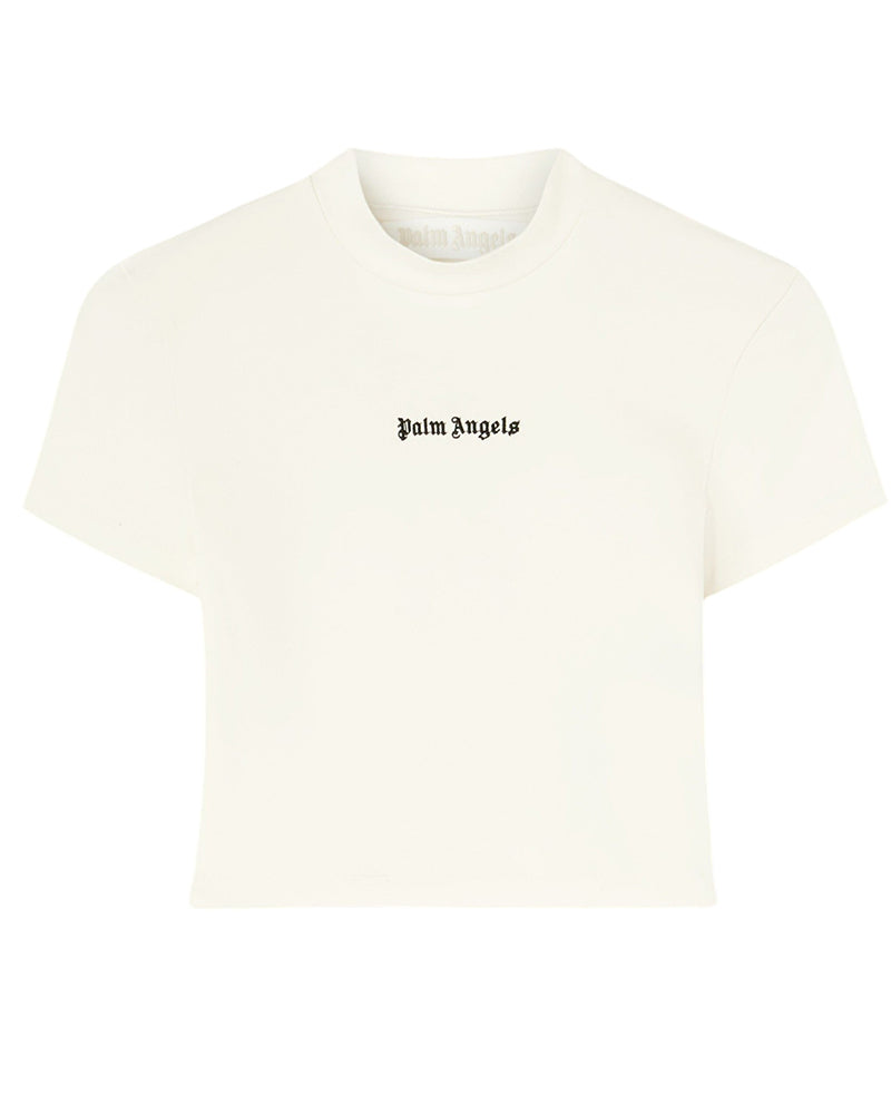 Palm Angels T-shirt avorio cropped in jersey con logo PWAA077C99JER0010310