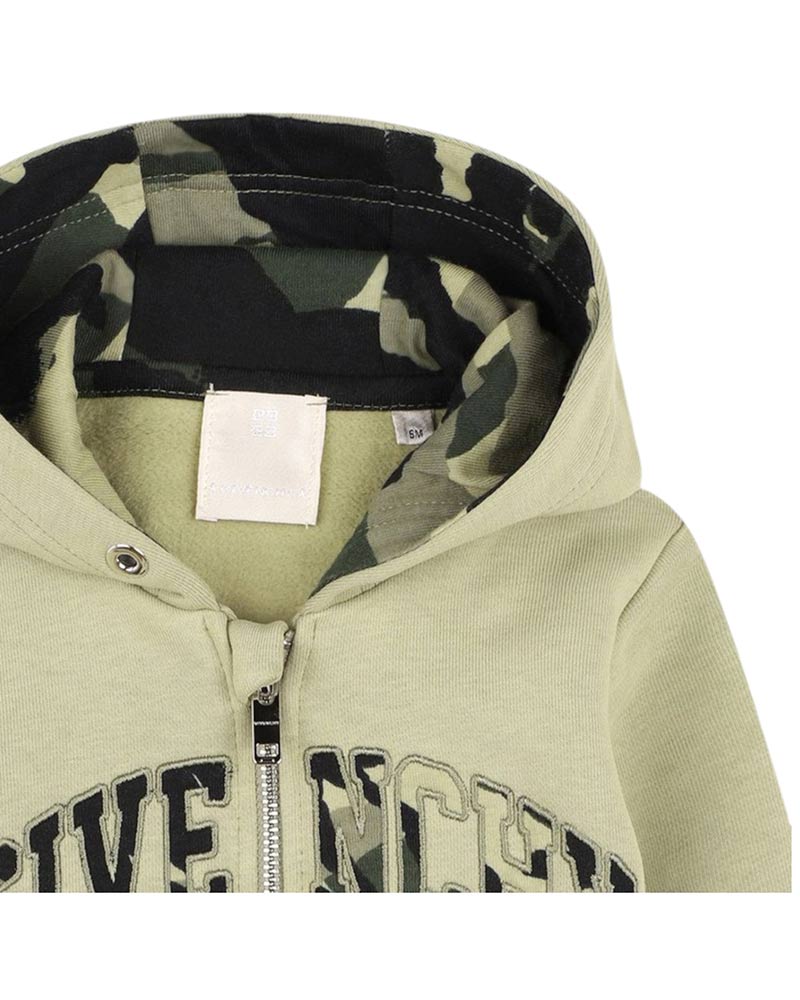 Felpa da neonato realizzata in cotone garzato. Presenta cappuccio, maniche lunghe, chiusura frontale con zip, fodera in pile, tasche sul davanti, polsi e orlo a coste. È decorata con logo ricamato sul davanti.