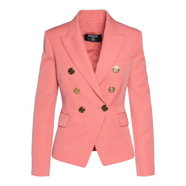 Zweireihige Jacke für Mädchen, Frontverschluss mit goldfarbenen Knöpfen, zwei aufgesetzte Taschen mit Patte vorne und Knöpfe an den Manschetten.