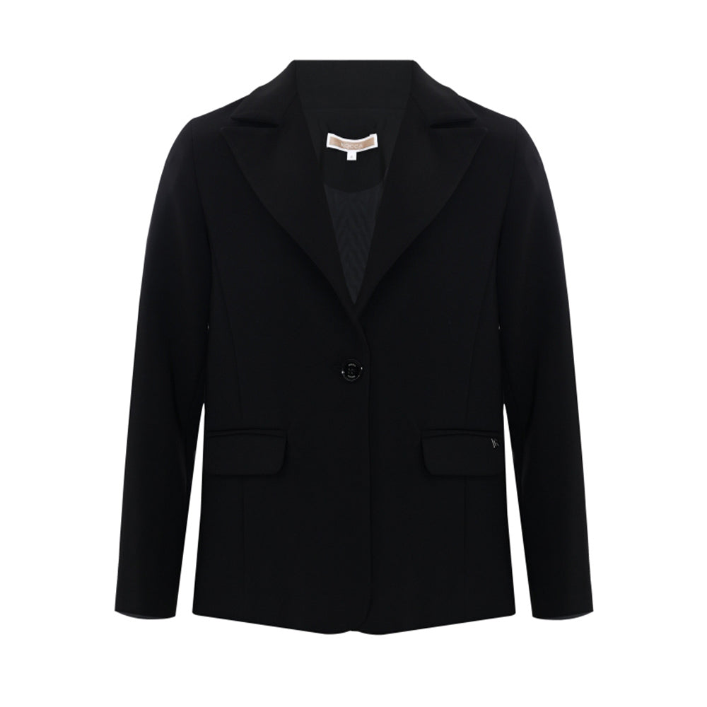 Giacca monopetto Maelar realizzata in misto viscosa, caratterizzata da collo a revers, chiusura frontale con bottone, maniche lunghe e due tasche decorative con patta sul davanti.