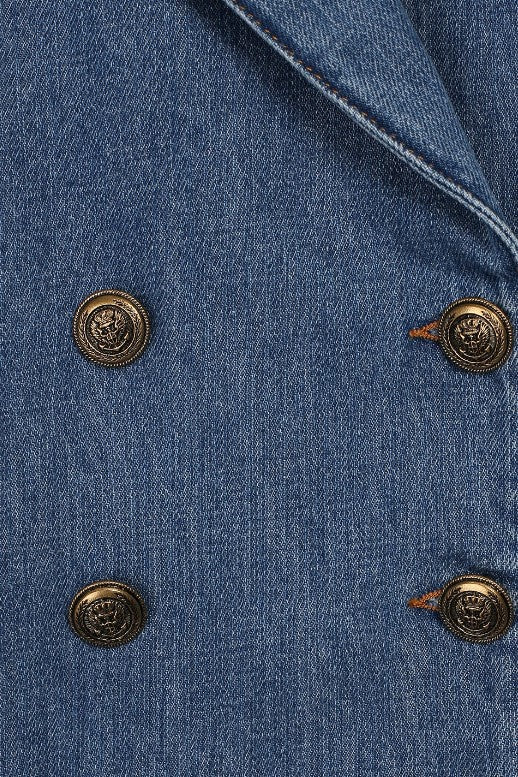 Zweireihige Jeansjacke, Knopfverschluss vorne.