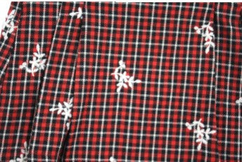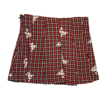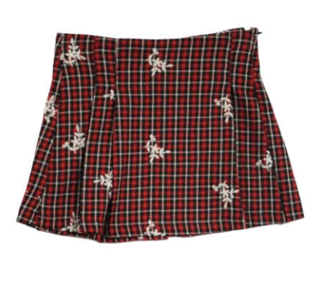 Rock mit Falten, Schottenmuster, kontrastierender Stickerei, seitlicher Reißverschluss.
