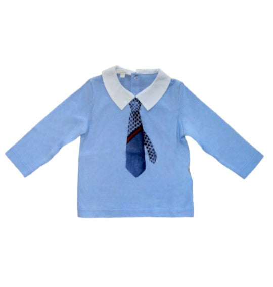 T-Shirt mit Langarmkragen, Aufdruck auf der Vorderseite. Druckknopfverschluss auf der Rückseite.