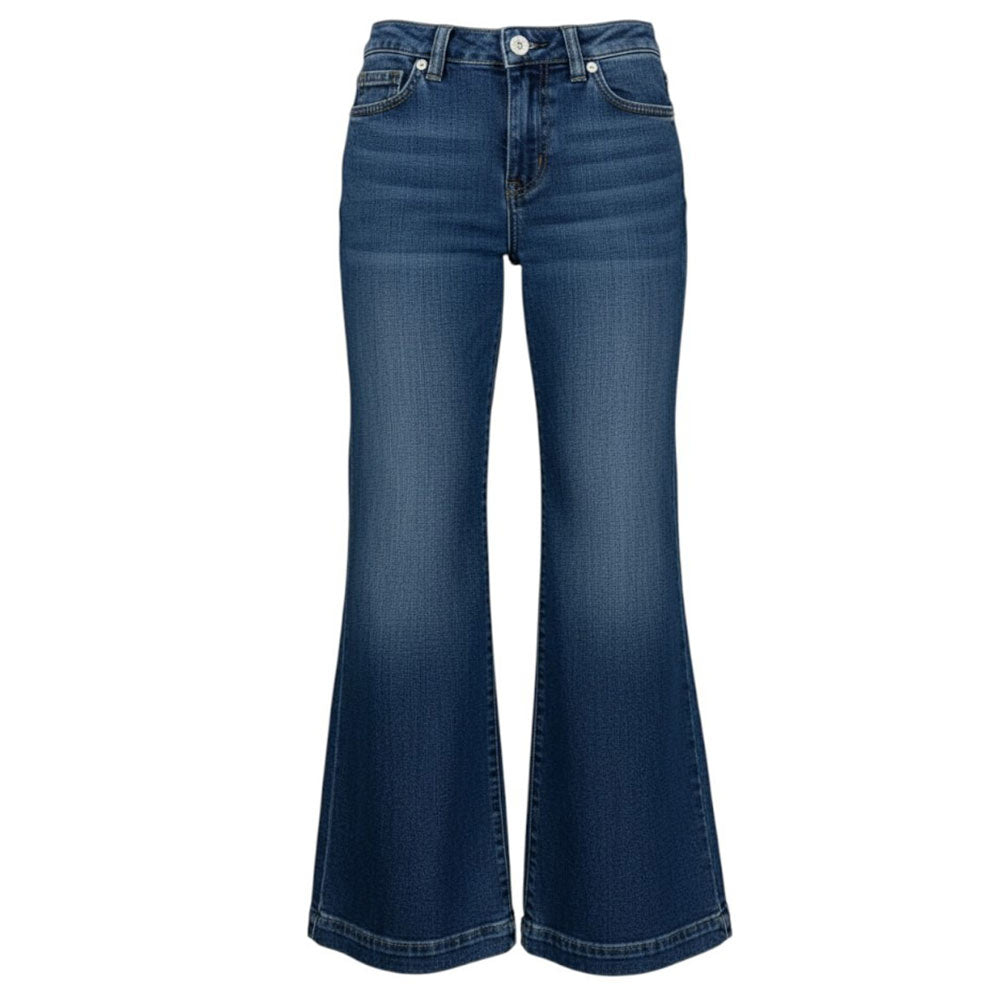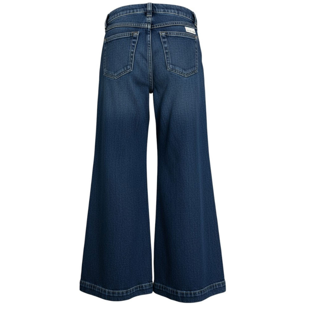 Jeans realizzati in denim di cotone. Modello cinque tasche. Chiusura frontale con bottone e zip, passanti per cintura e patch logo applicata sul retro.